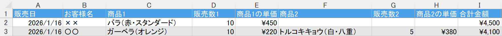 - ヘッダー(項目名)の固定表示