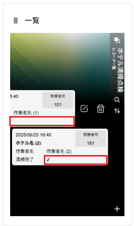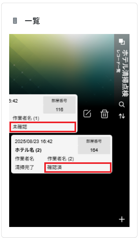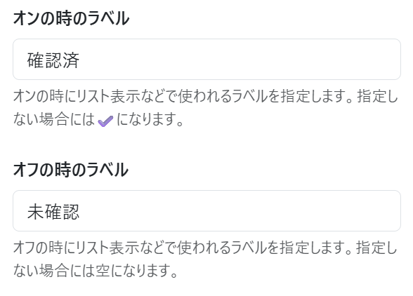 例えば、オンの時のラベルに「確認済」、オフの時のラベルに「未確認」と指定した場合、指定した内容が表示されます。