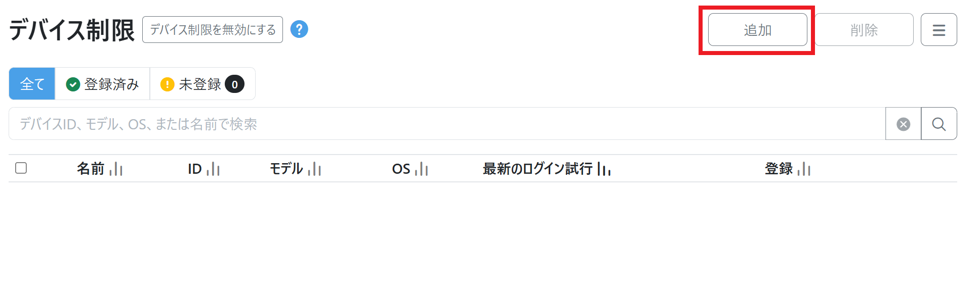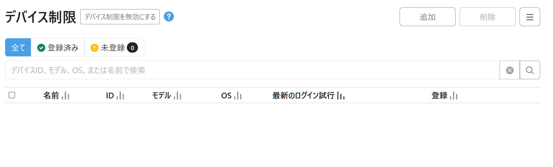 画面が切り替わり、デバイスを登録・管理する画面になります。