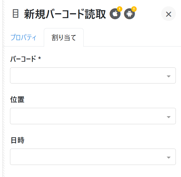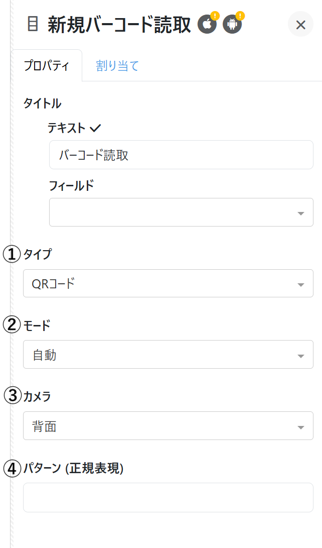 作成シーン(フィールド・画像・ビデオ・バーコード読取)