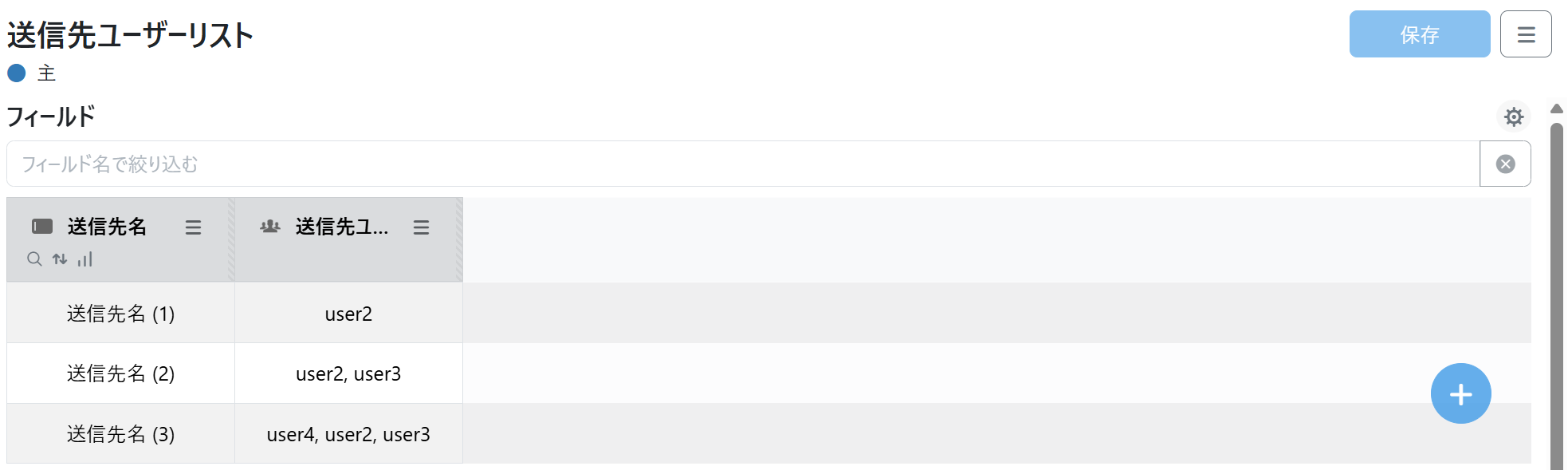 例)データポケット名:送信先ユーザーリスト