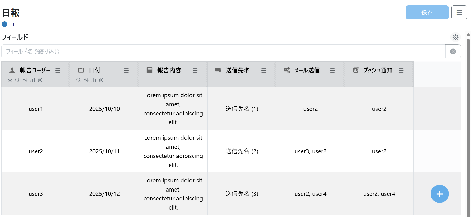 報告ユーザー:ユーザーフィールド