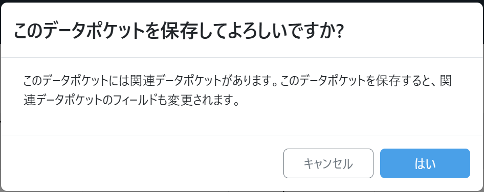 データポケットを保存します。副データポケットがある時、下図のような画面が表示されます。「はい」をクリックします。