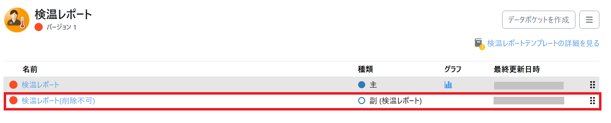 表示されるデータポケットが、プロファイルで設定されたデータポケット(この例では、「検温レポート(削除不可)」)になります。